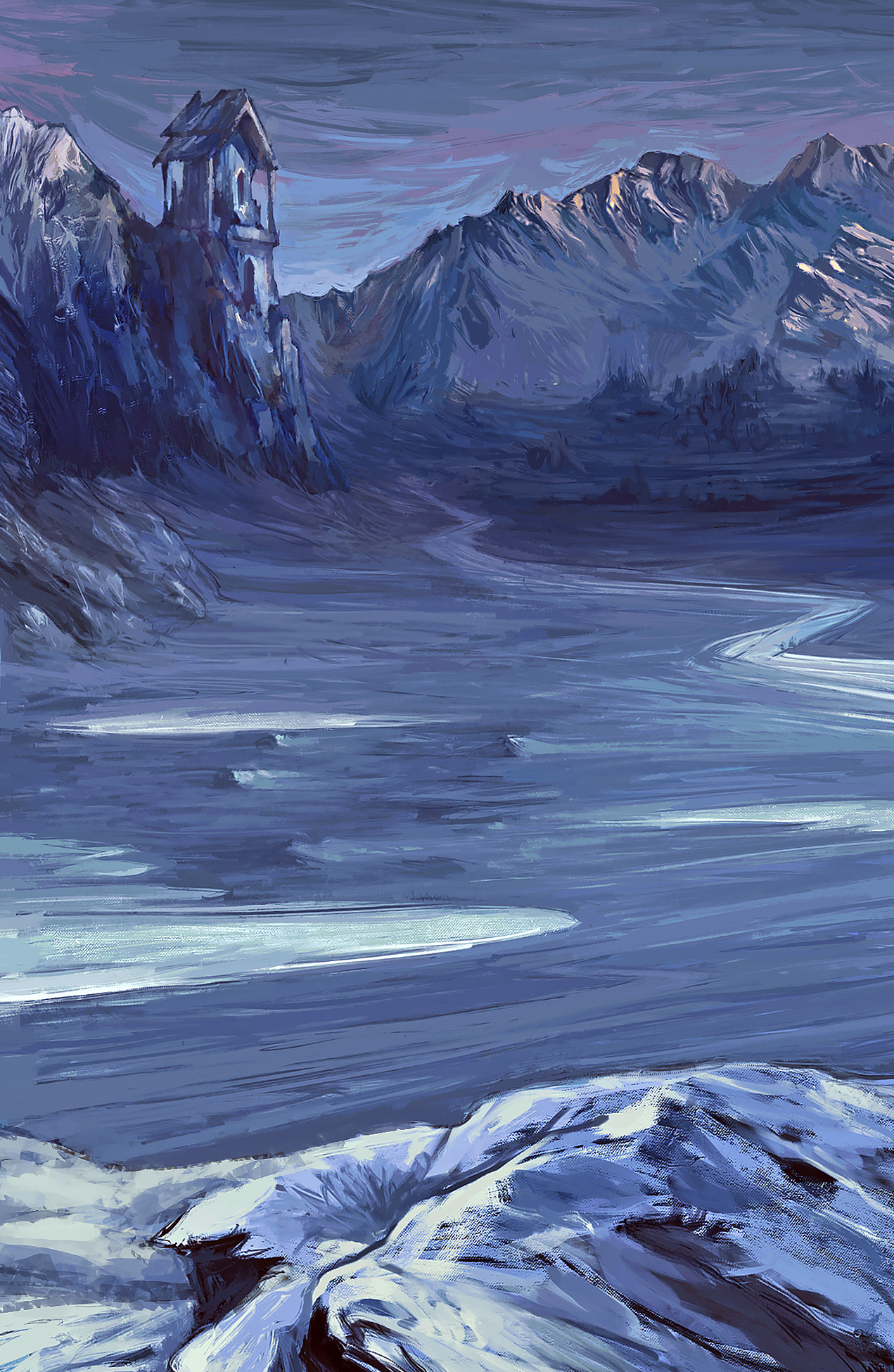 Illustrated for a role play gaming project which is included norse mythology. These lands are frost and abandoned.